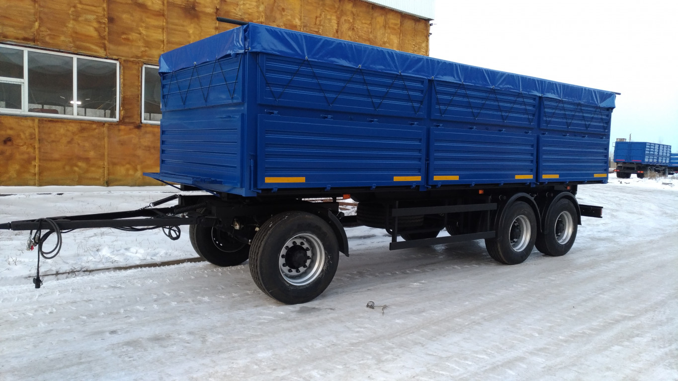 Бортовая платформа стальная, ручное запирание бортов, верхний ряд боковых бортов глухой, нижний ряд боковых бортов стальной подвижный с верхней навеской. Исполнение задней части: с открывающимися бортами с верхней навеской в нижней части ворот, так же возможность по выбору заказчика, установки распашных ворот, люка под зерномет. Пол стальной. Разгрузка на две боковые стороны.