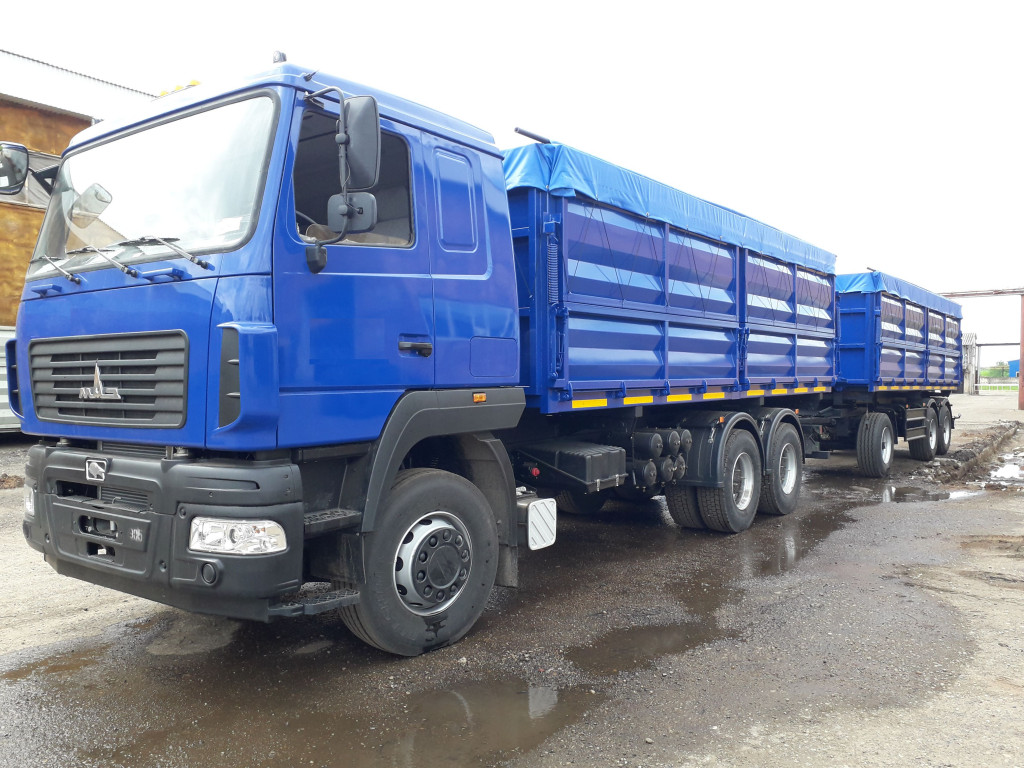 Зерновоз самосвал МАЗ 6312С9 с прицепом 30 куб. м